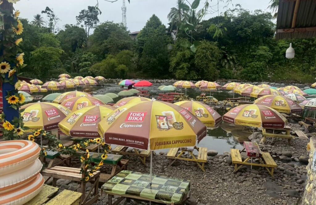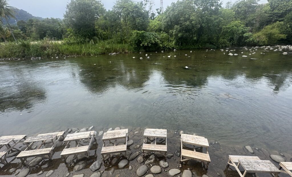 そしてこの観光地の川では目の前に群がっているマシールに餌をやりながらコーヒー飲んだり飯を食う川床が並んでいる。